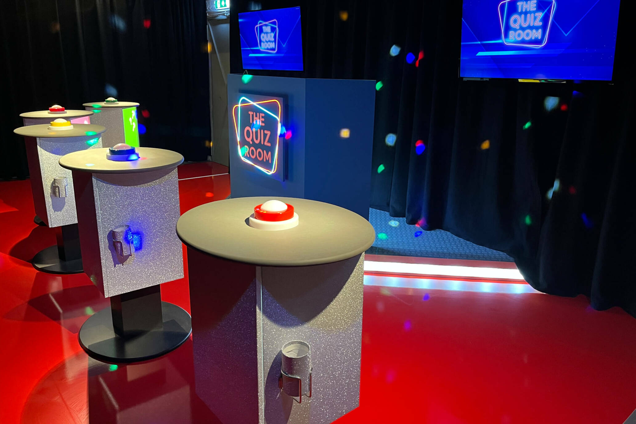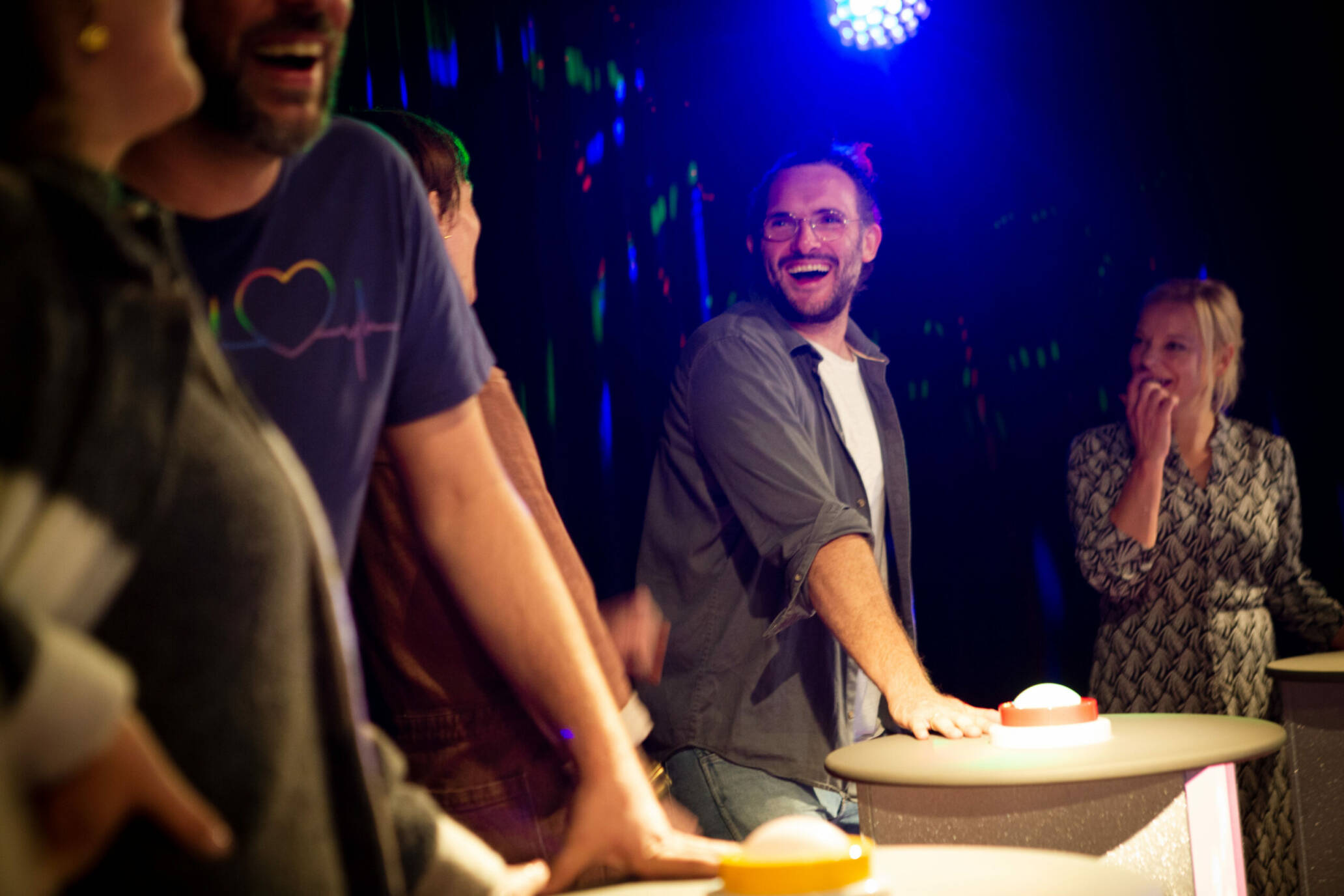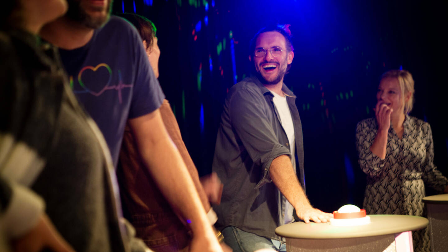 Schnappt euch Freund*innen, Verwandte, Kolleg*innen und kommt in unser Quiz-Studio.