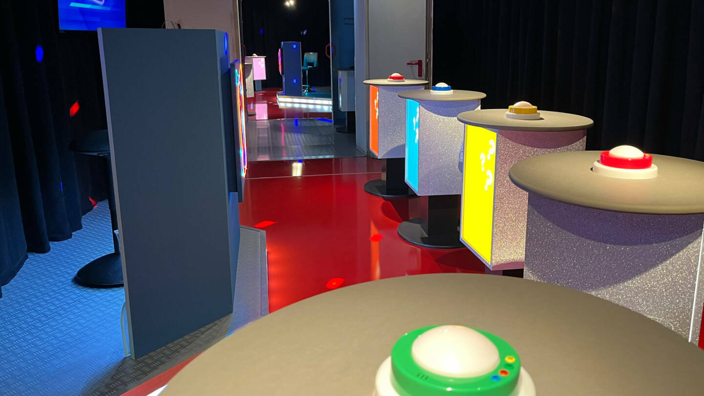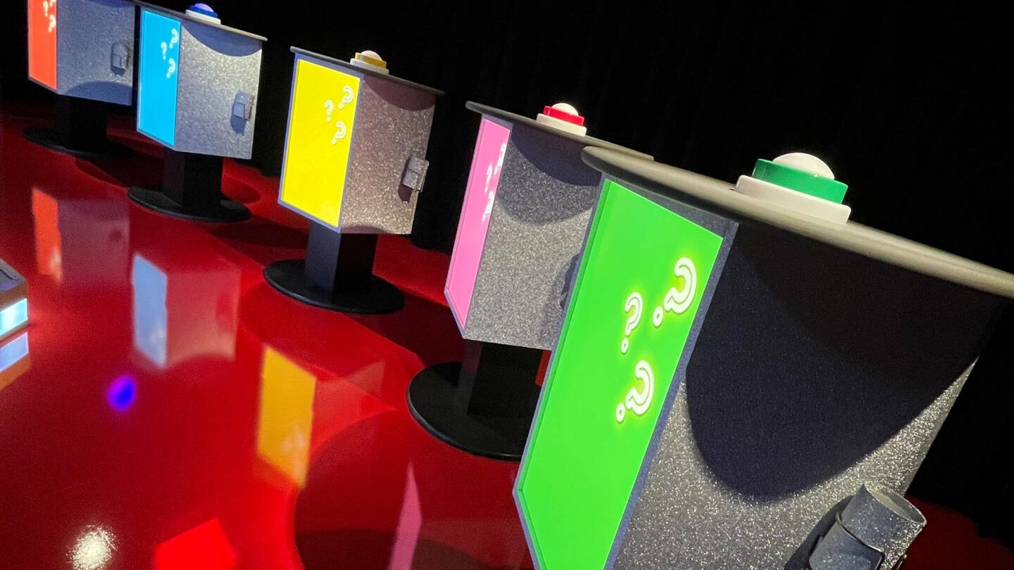 Wir haben 6 Buzzer-Pulte, ab jetzt stündet ihr teilweise zu zweit dort.