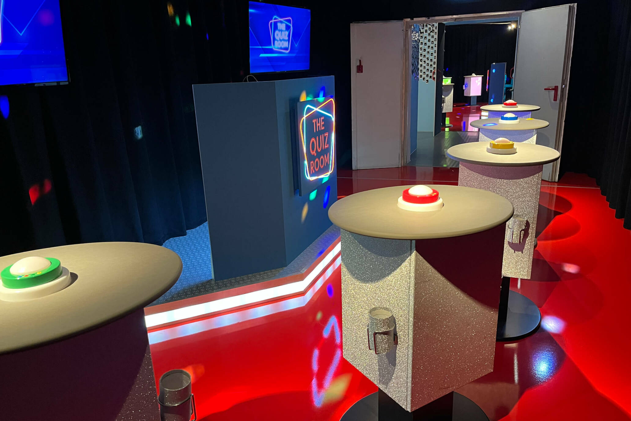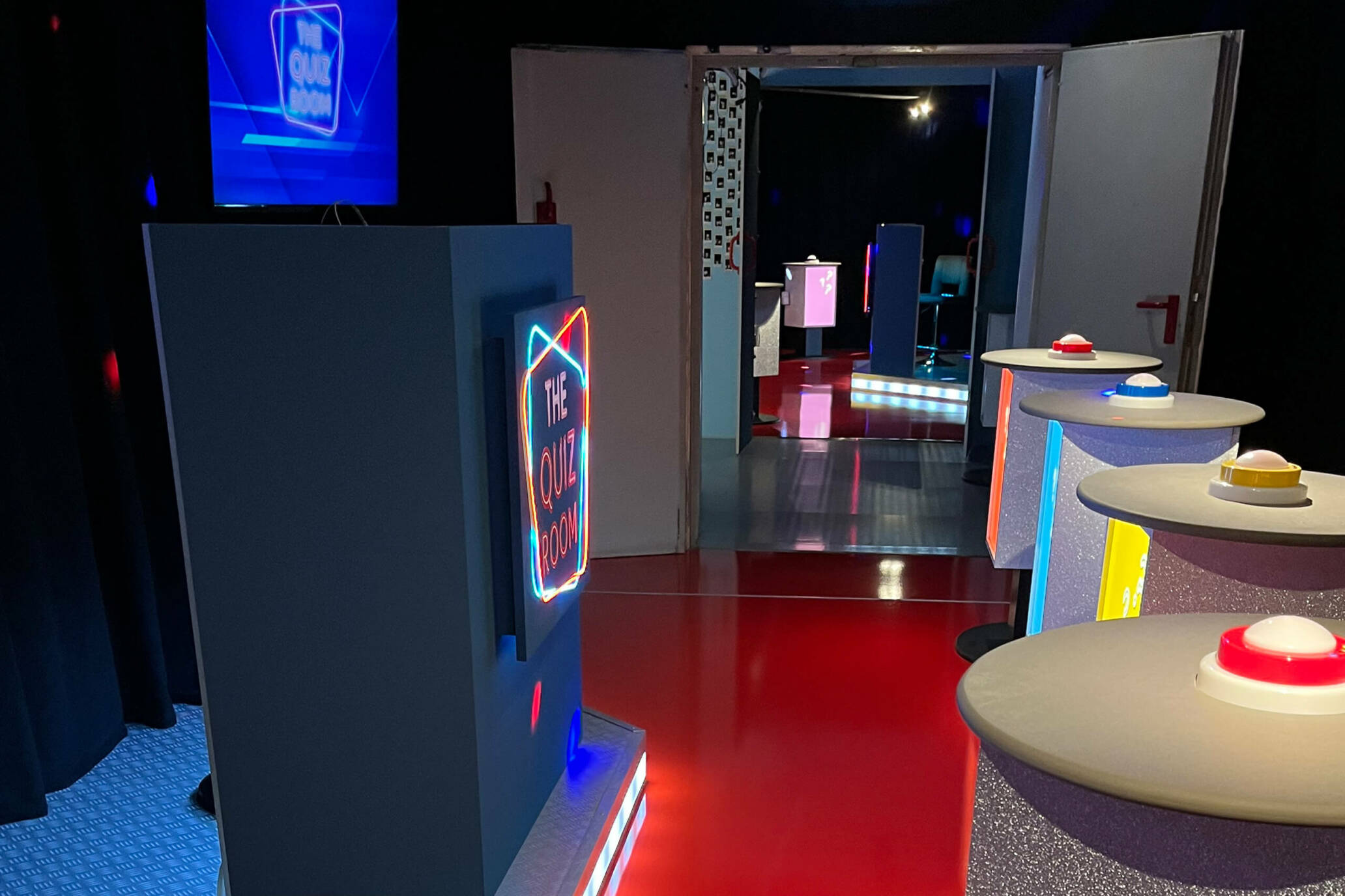 Seid ihr eine Gruppe von 24-34 Personen, bucht einfach beide Studios zur gleichen Zeit, es wird dann zeitgleich das gleiche Quiz gespielt.